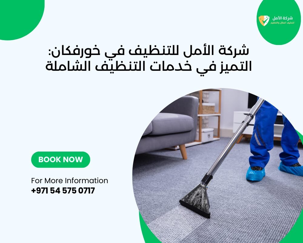 تثبت شركة الأمل للتنظيف في الإمارات، وبالتحديد في خورفكان، أنها من الشركات الرائدة في مجال خدمات التنظيف الشاملة. بفضل التزامها بالجودة، استخدام التقنيات الحديثة، وفريق العمل المحترف، تظل الشركة الخيار الأمثل لكل من يبحث عن خدمات تنظيف موثوقة ومتميزة. إذا كنت تبحث عن شركة تنظيف في خورفكان تقدم خدمات متكاملة وذات جودة عالية، فإن شركة الأمل للتنظيف هي الخيار المثالي لتلبية جميع احتياجاتك. يمكنك الاتصال بهم على الرقم +971545750717 للحصول على أفضل خدمات التنظيف في خورفكان.